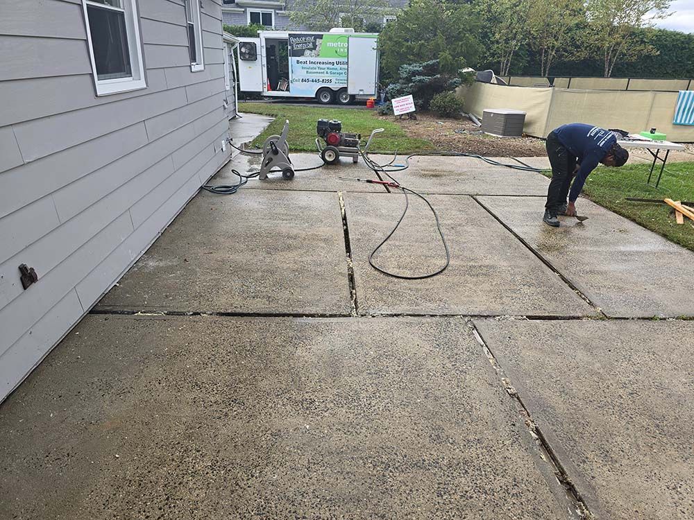 - Initial Assessment - First, we assess the condition of the sunken concrete at your property in New Jersey, Westchester NY, or the Lower Hudson Valley. We identify the cause of the sinking, such as soil erosion or settling, and determine the best points for foam injection.